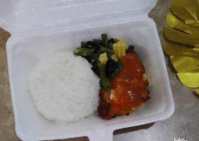 Langkah-langkah menyiapkan Nasi rames ayam penyet+tumisan: