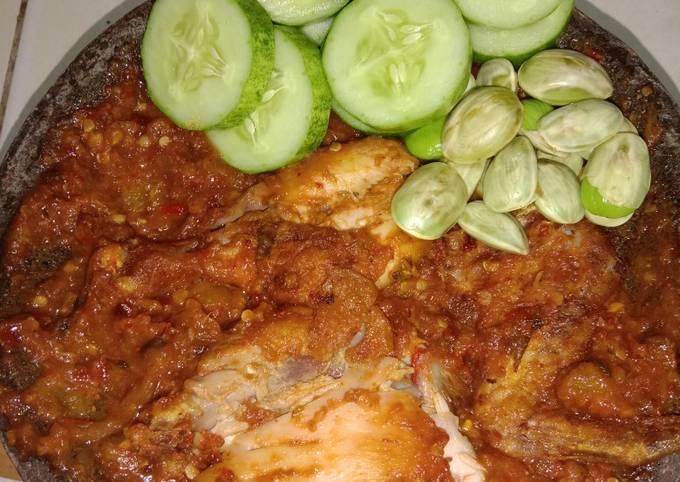 Ayam penyet. Ayam penyet is known for its spicy sambal, which is made with a mixture of chilli, anchovies, tomatoes, shallots, garlic, shrimp paste, tamarind and lime juice. Like its namesake, the mixture is then smashed into a paste to be eaten with the dish. Once fragrant, stir in chopped tomato and set aside.